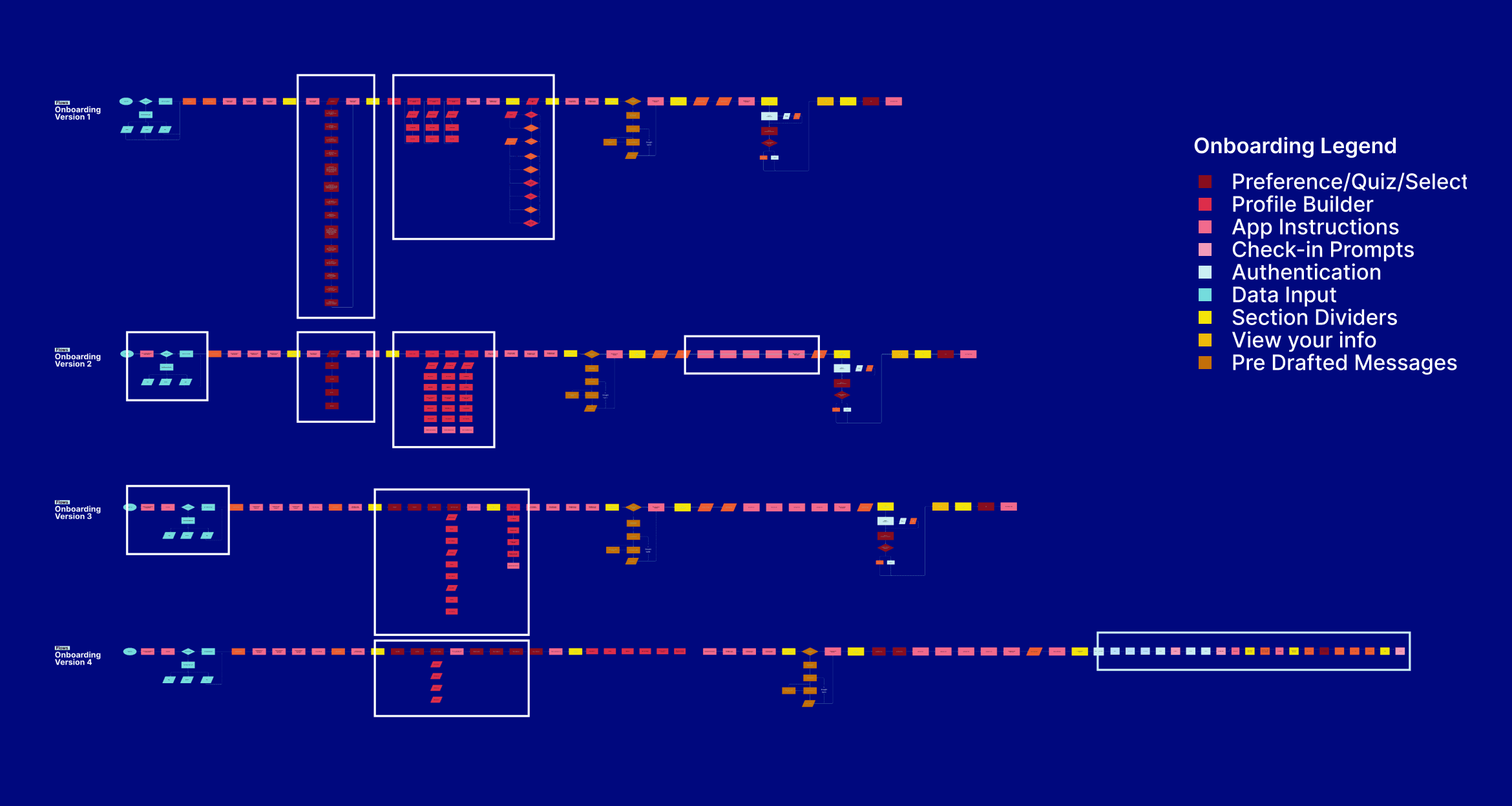 The above diagrams is an example of how the human centered design process affected the onboarding narrative. We hypothesized that deep architectures would keep the users in a flow state, and make for a satisfying process.